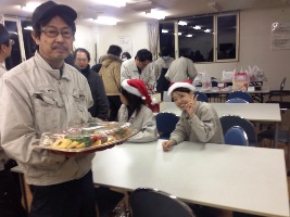 今年も交友会からクリスマス品の配布がありました。業務終了後、交友会会長からクリスマスケーキやチキンが配られ、みんな笑顔で受け取っていました♪